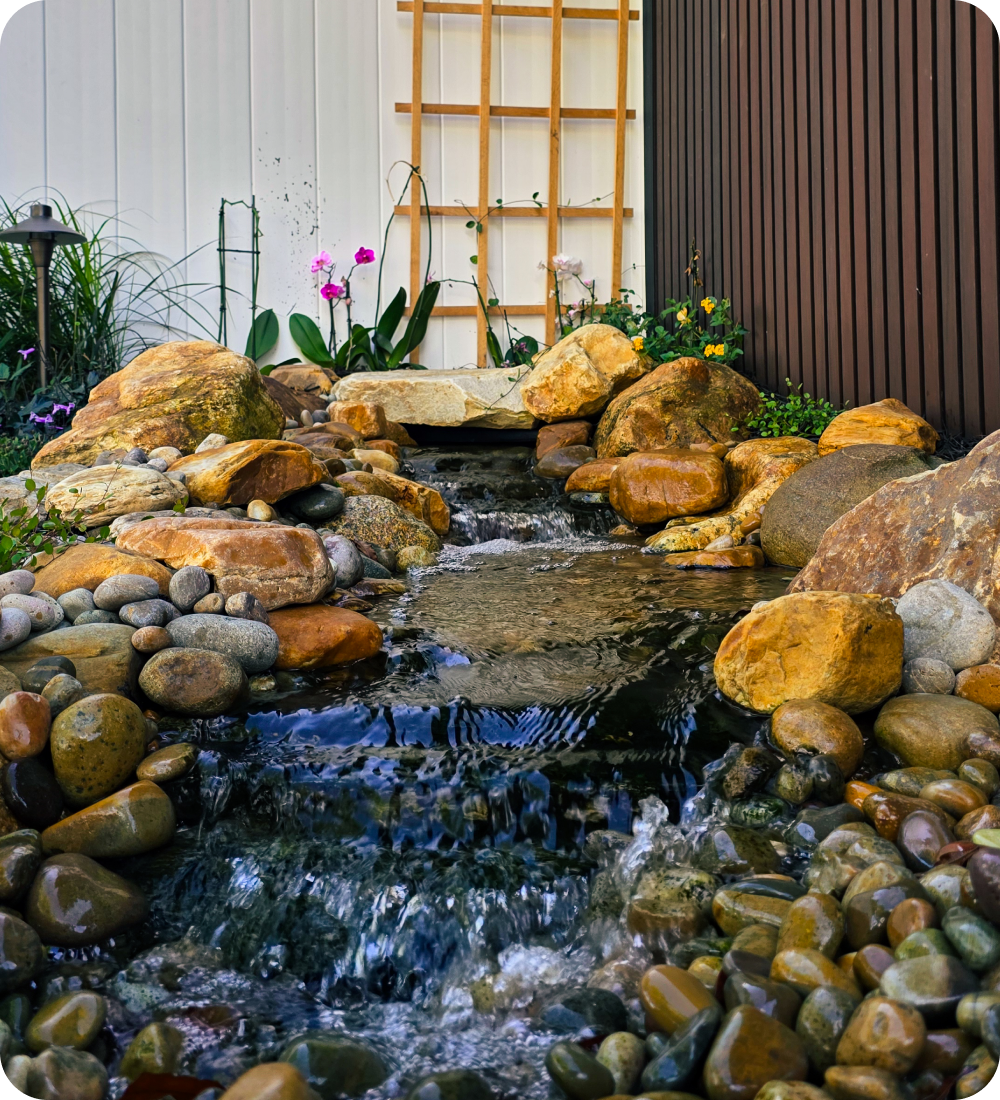 We design, install, and maintain custom water features like ponds, waterfalls, and streams, while also offering landscaping, lighting, and irrigation services for a complete outdoor oasis.
